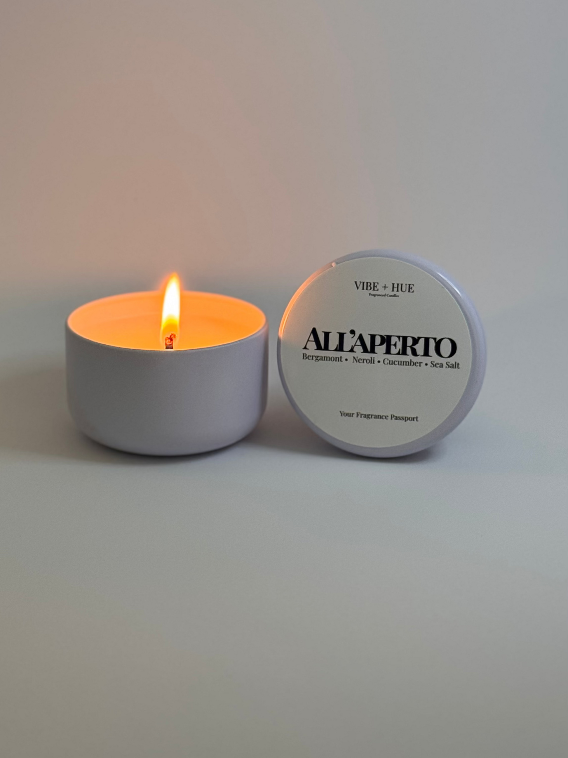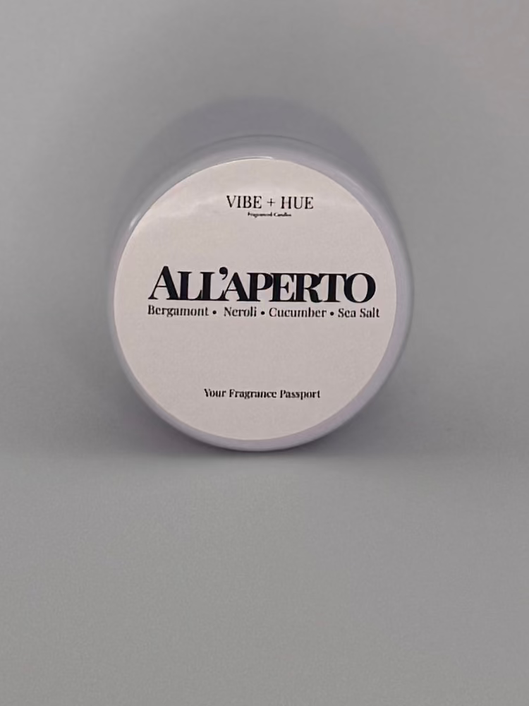 All’aperto is outside dining at golden hour—warm skin, clinking glasses, and a breeze carrying perfume through the air like a quiet invitation. Fresh citrus and cool spa notes open the space clean and bright, then soften into airy tea, smooth woods, and a subtle musky warmth that feels like the best part of a warm evening: effortless, elevated, and just a little addictive.